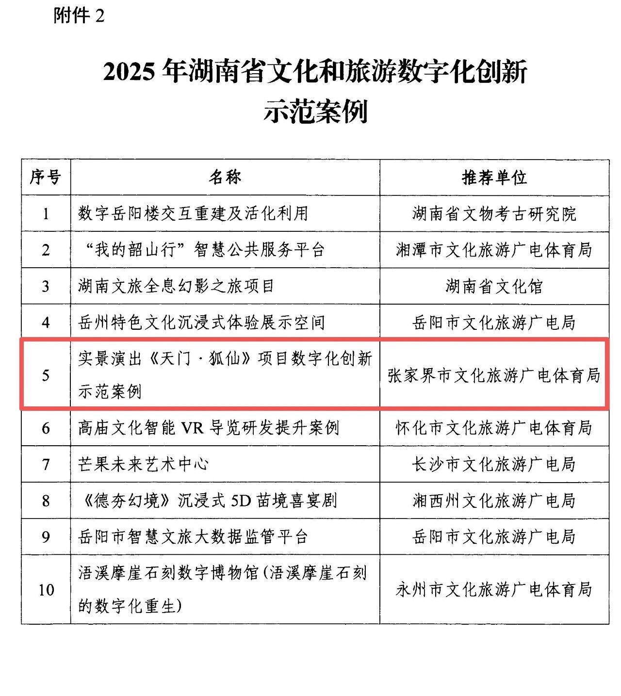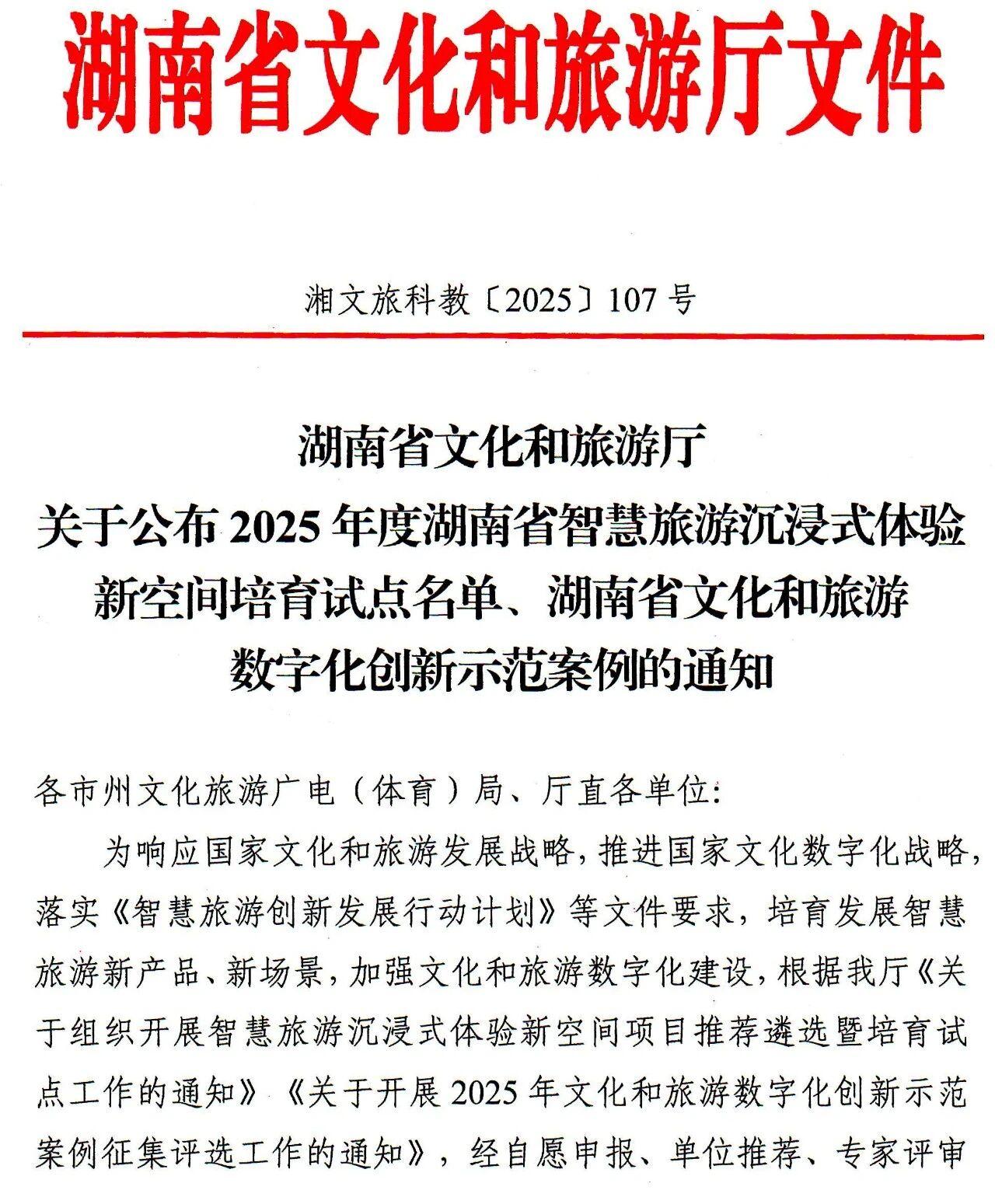 近日,省文化和旅游厅公布2025年度全省智慧旅游沉浸式体验新空间培育试点,文化和旅游数字化创新示范案例名单,张家界“实景演出《天门·狐仙》项目数字化创新示范案例”“张家界九歌·山鬼文化旅游景区”成功入选。