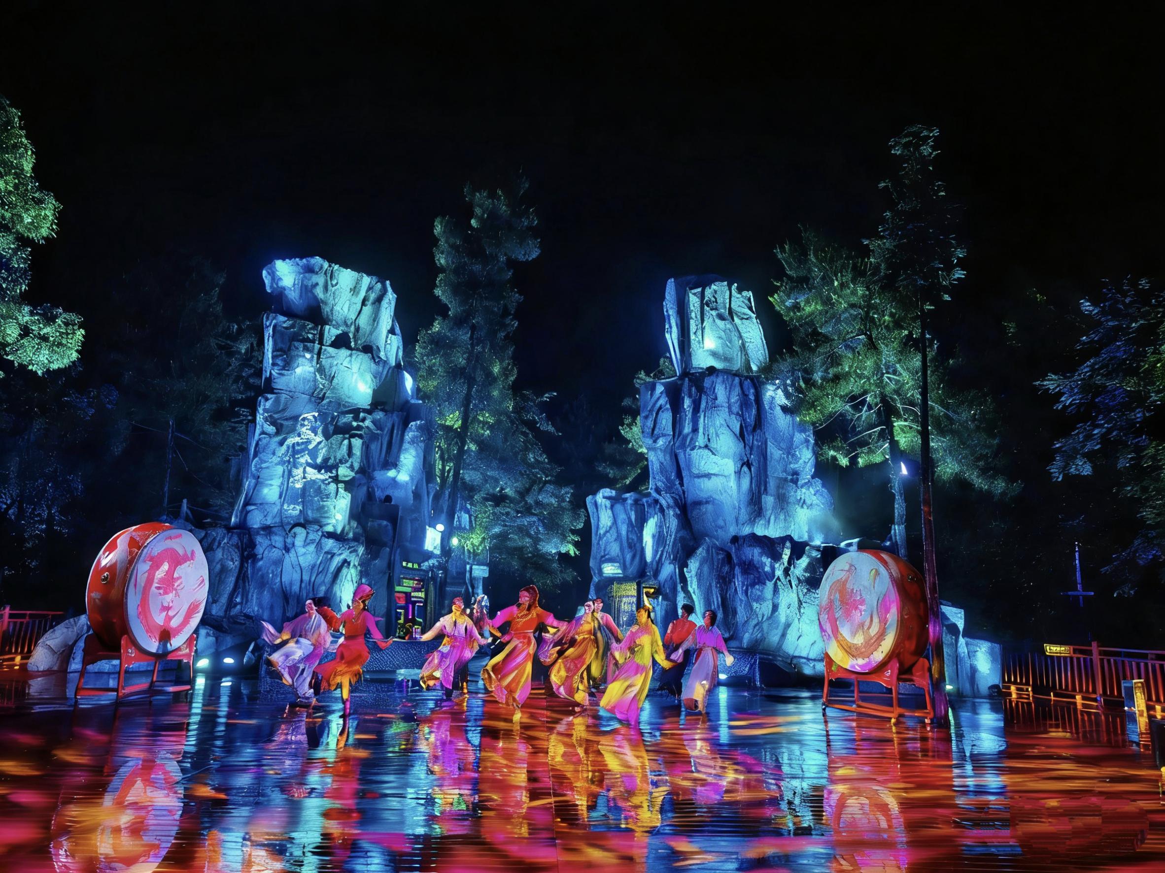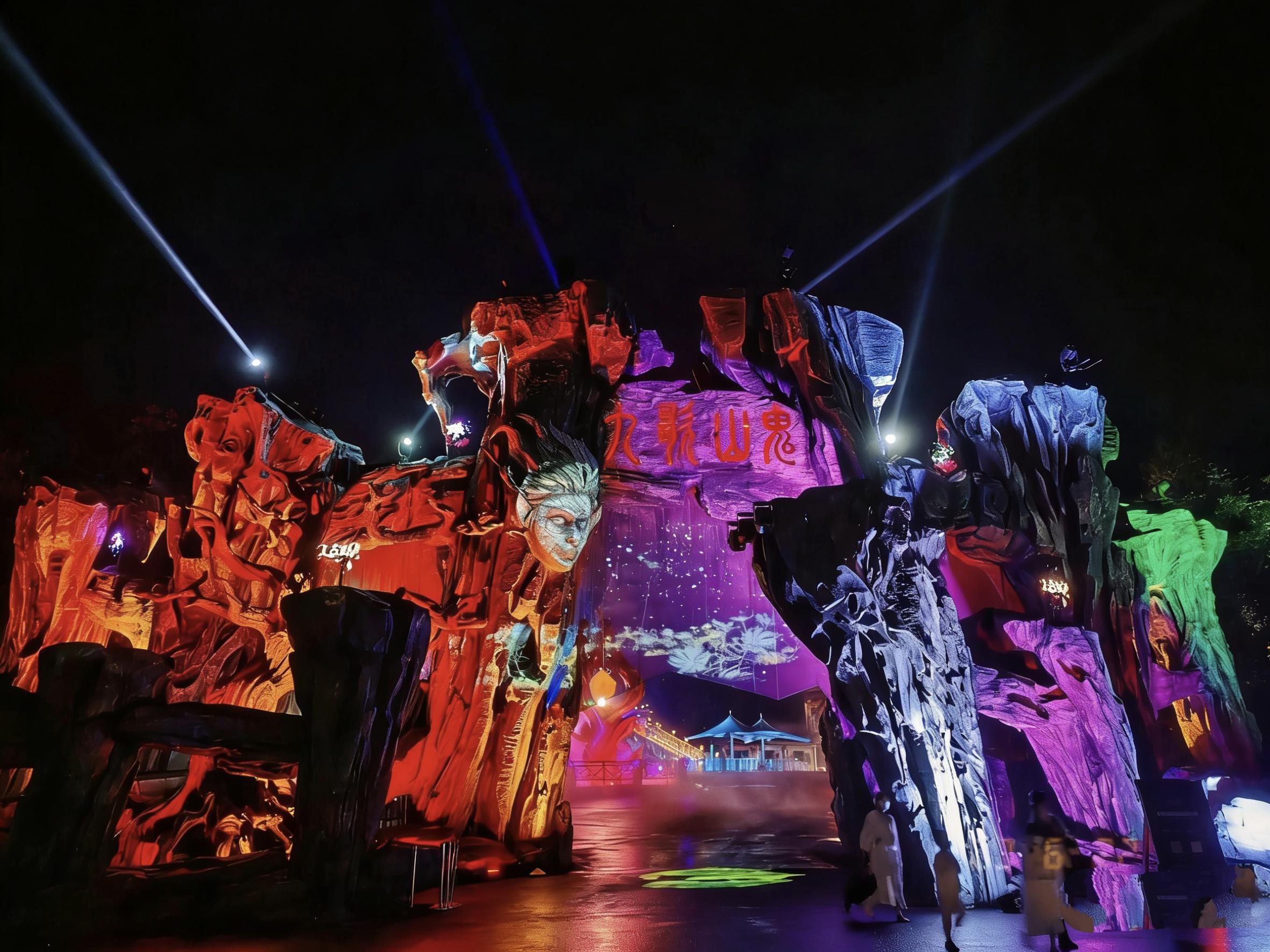 作为全球首个以楚辞文化为核心的行浸式夜游景区,九歌·山鬼文化旅游景区地处张家界东线旅游精品线路核心区域,坐落于慈利县三官寺土家族乡。该景区依托原始森林、喀斯特溶洞、天坑等独特自然地貌,以屈原《楚辞·九歌》篇章为故事主线,融合湘西神话与土家族传统传说,创新打造“数字化+720°行浸式+轻剧本杀”体验模式。景区规划游览路线近2.5公里,步行观赏时长约1.5小时,布局14个主题景点、4个实景光影剧场及54个轻剧本探秘互动点,通过上千台激光投影、灯光、音响等多媒体设备,将自然景观与数字光影深度融合,让游客沉浸式感受“上古张家界”的奇幻魅力。